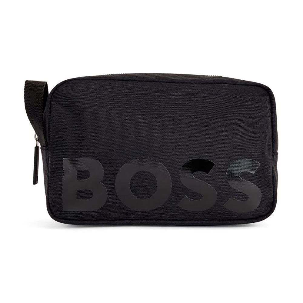 A contemporary washbag by BOSS. Featuring a large logo printed across the front, this washbag is crafted in lightweight nylon and fitted with a lateral handle. For our RESPONSIBLE products, we always use at least 60% more sustainable raw materials. This accessory is made from at least 60% certified recycled polyamide. By using recycled polyamide, we aim to save resources by making use of existing plastic material. Recycled nylon is usually made from pre-consumer spinning or fabric waste and may also come from post-consumer industrial fishing nets. We only use raw materials with a verified chain of custody to ensure the use of certified recycled polyamide.