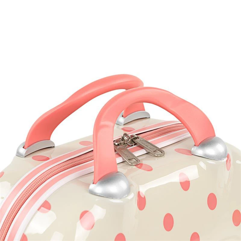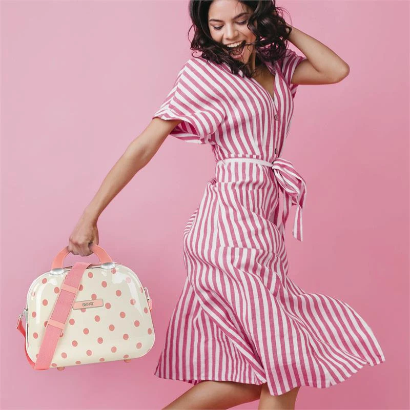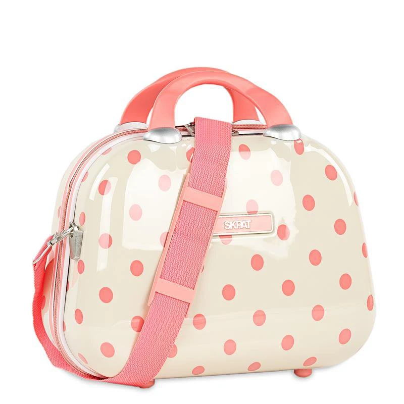 SKPAT beauty case made of polycarbonate, a lightweight and strong material. Adjustable strap and back band to adjust it to the trolley. 2 compartments and inner mirror.