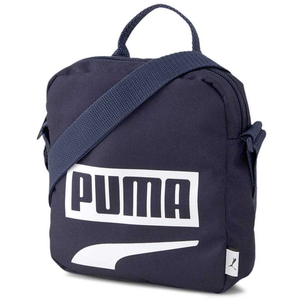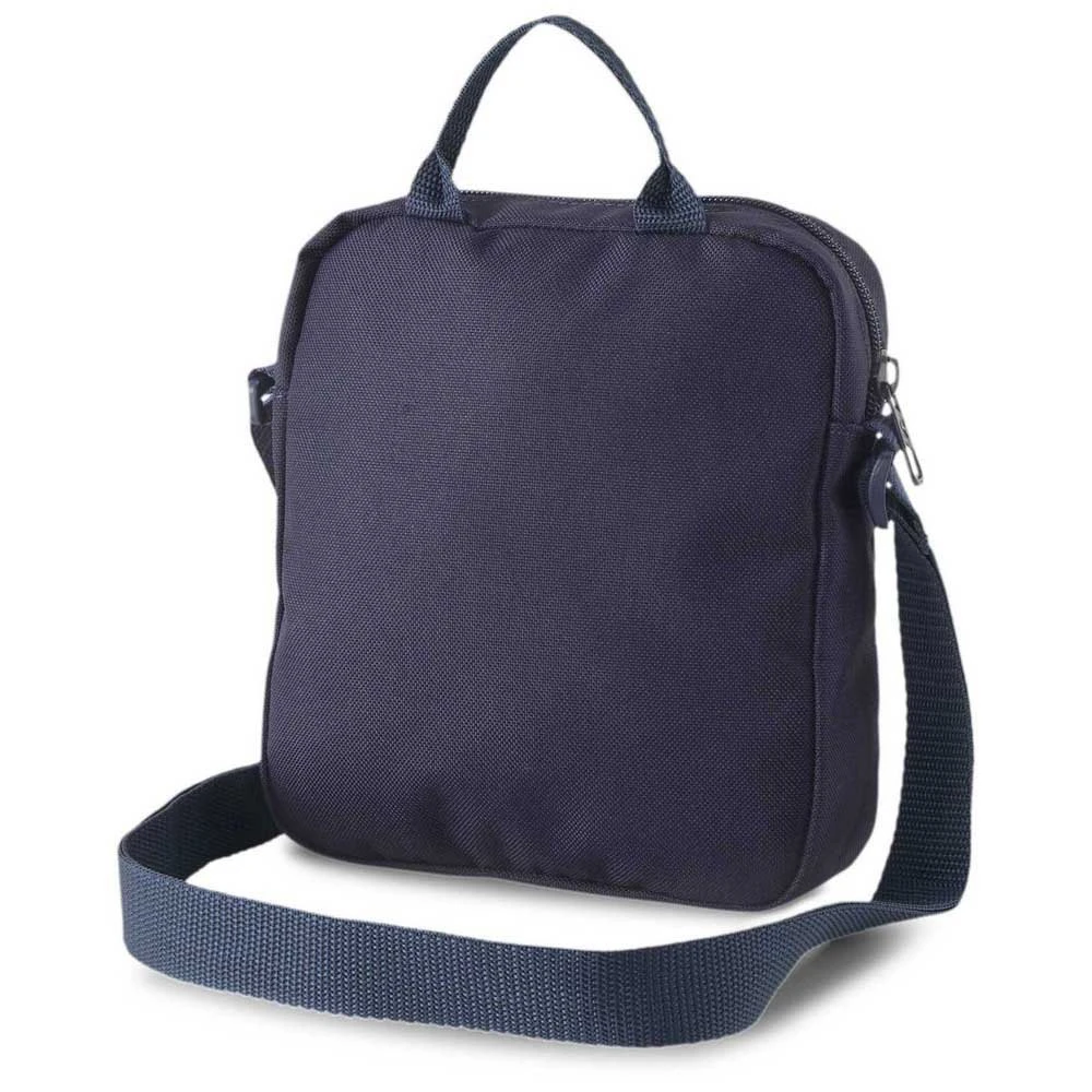 Zip opening into main compartment, zip pocket inside, PUMA branded 150D Polyester lining with PU backing, adjustable webbing shoulder strap, webbing carry handle, branded metal zip puller, reflective tape and PUMA wordmarked logo print on front.