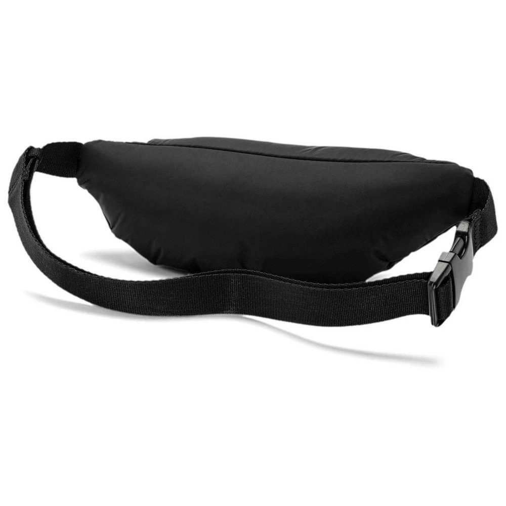 Zip opening into main compartment, 150D Polyester lining with PU backing, adjustable webbing waist strap with plastic hardware, fully padded body, round PUMA heritage metal zip puller with embossed PUMA Wordmark, fully detachable keyring with PUMA No.2 Logo jaquard webbing, woven label on front with silver metallic PUMA No.2 Logo.