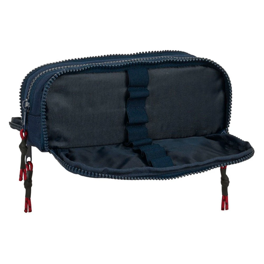 Front drop-down compartment with elastics for pens, pencils etc.
